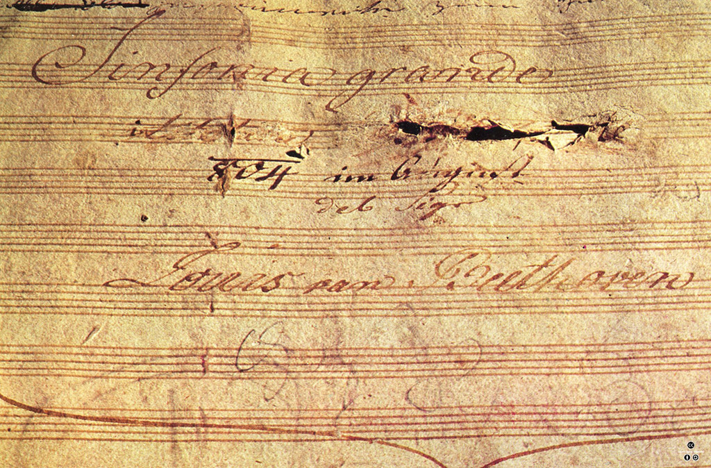 당시 유럽 지식인들의 고뇌는 베토벤 교향곡 3번 [영웅]의 창작 배경에도 고스란히 드러나 있다. 프랑스 공화주의에 깊이 공감했던 작곡가는 이 교향곡을 작곡할 당시 ‘보나파르트’라는 제목을 붙이려 했다. 하지만 베토벤은 1804년 나폴레옹의 황제 취임 소식을 접한 뒤 “그도 평범한 인간에 지나지 않는다. 인권을 짓밟고 야망에 탐닉해서 다른 사람보다 자신을 우월하게 여기는 독재자가 될 것이다”라며 분노했다. 결국 작곡가는 보나파르트라고 적었던 악보 표지를 찢어버리고 ‘영웅’이라고 명명했다. 지금까지 전하는 악보 표지에도 ‘보나파르트’라는 글자를 격하게 긁어서 지워버린 흔적이 뚜렷하다. 하지만 2년 뒤 이 곡의 악보를 출판할 때 작곡가는 “위대한 인간에 대한 추억을 기리기 위해 작곡한 영웅적 교향곡”이라는 문구를 덧붙였다. 베토벤에게도 나폴레옹은 격렬한 애증의 대상이었던 것이다.